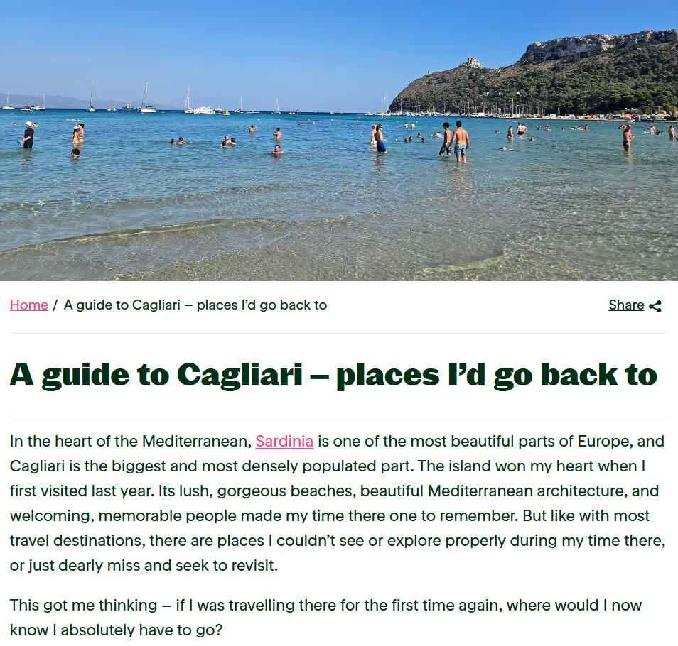 First Choice (sister brand to TUI) loves this destination guide to Cagliari due to its repeat travel angle. I'm thrilled to embody slow and sustainable travel values in my work.